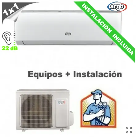 Venta e instalación de aire acondicionado split ECOLIGHT PLUS de Argo. Aire acondicionado split 1x1 con instalación incluida ARGO - ECOLIGHT PLUS R-32. Potencias térmicas desde 2.5kW a 6kW. Eficiencia energética A++. Tecnología Inverter. Presión sonora interior mínima 22 dBA. Función Auto Clean. Filtro antibacteriano de fácil limpieza. Modo Sleep.